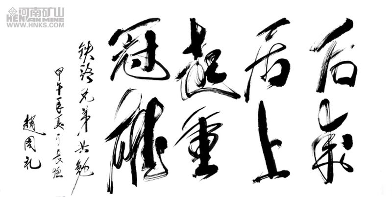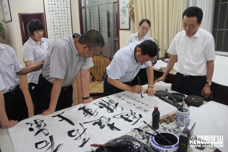 雙方在真誠、友好的氛圍中進行了深入的溝通與交流,趙周禮副總經理興趣盎然,意猶未盡,欣然為河南礦山揮毫潑墨”后來居上、起重冠雄“。