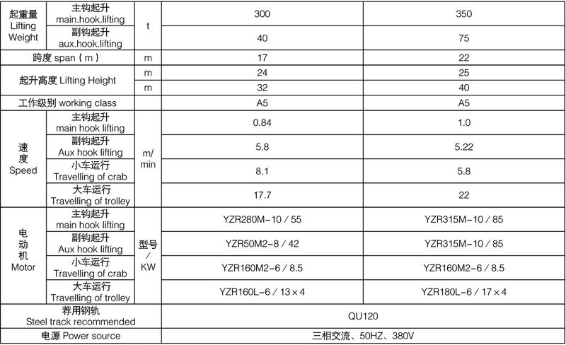 QD型300/40~350/75噸吊鉤橋式